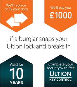 Should a burglary take place within 5 years from the date of installation and entry was achieved by snapping an Ultion lock we will pay you £1,000. Activation can be completed within 28 days of installation.